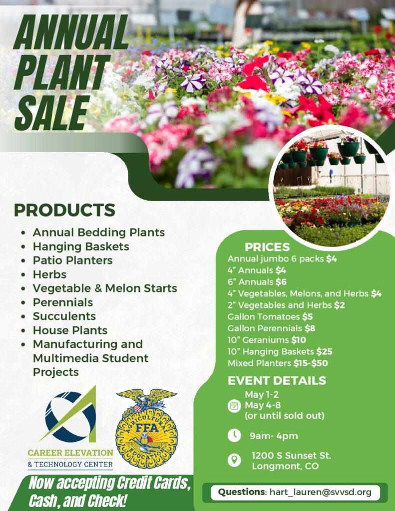 The Agriscience annual plant sale has been going on for many years. This year the sale is at CETC from: